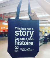The Ottawa Public Library celebrated Library Month 2017 with a special initiative in customer appreciation. Employees stationed at busy bus stations offered special book bags to thousands of city residents. These beautiful denim bags were made sustainably, fairly and locally by women at a nonprofit charitable organisation called EcoEquitable.
