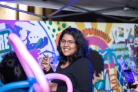 Opportunity: Transform a neglected public corridor into a beacon of inclusion, safety, and belonging while showcasing local artists and community voices on the side of the community’s public library. The addition of the Ferris wheel and a small scale paint-by-numbers activity allowed members of our community to see the art up close was a further opportunity for connection.